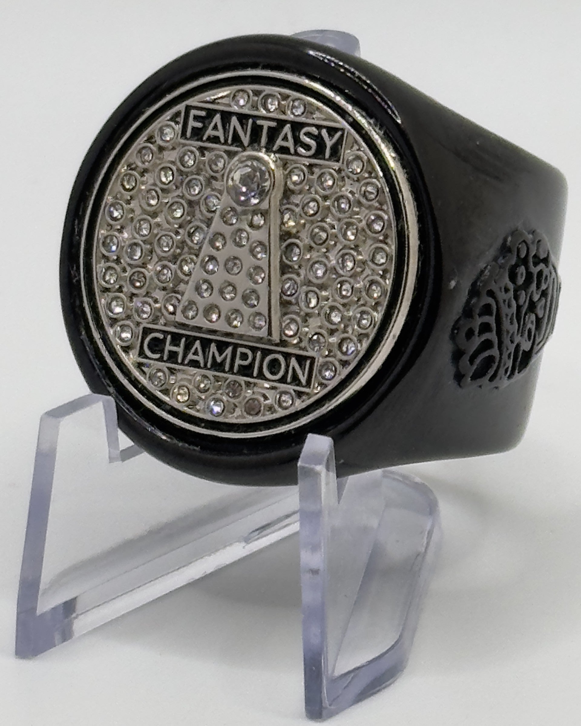 The Fantasy Champion deCAPitator ring! The ONLY ring in the world that cracks open bottle caps & can tabs with just a flick of the wrist. Made of durable stainless steel. Over 70 cubic zirconia. Comes in sizes from 6 to 15 with our patented ring sizer. Choose ring colors black, Gold or Silver. The ring foes on your middle finger for best leverage.